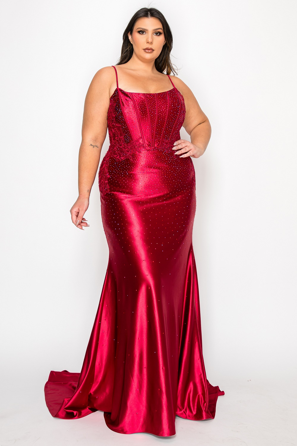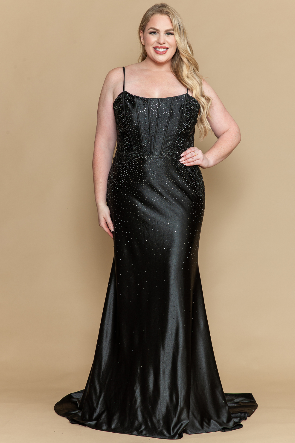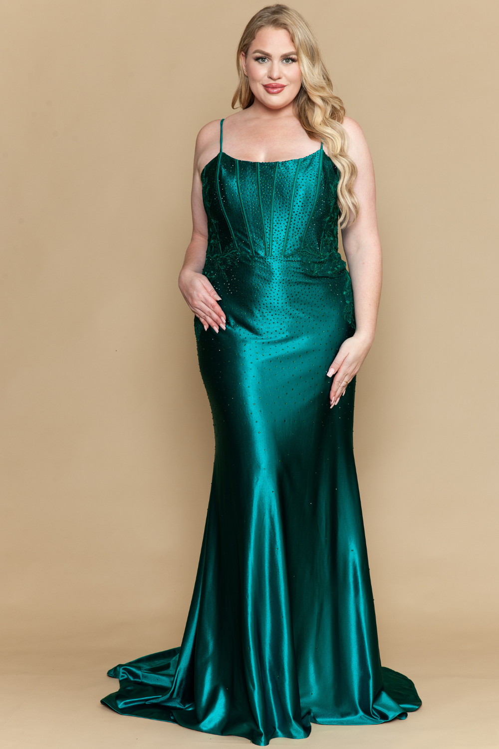 Curve Prom Dress – Satin with Embroidery & Rhinestones