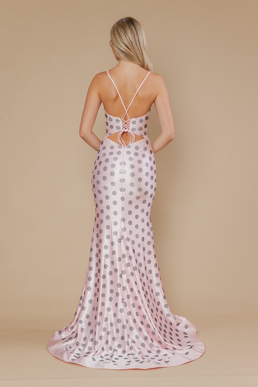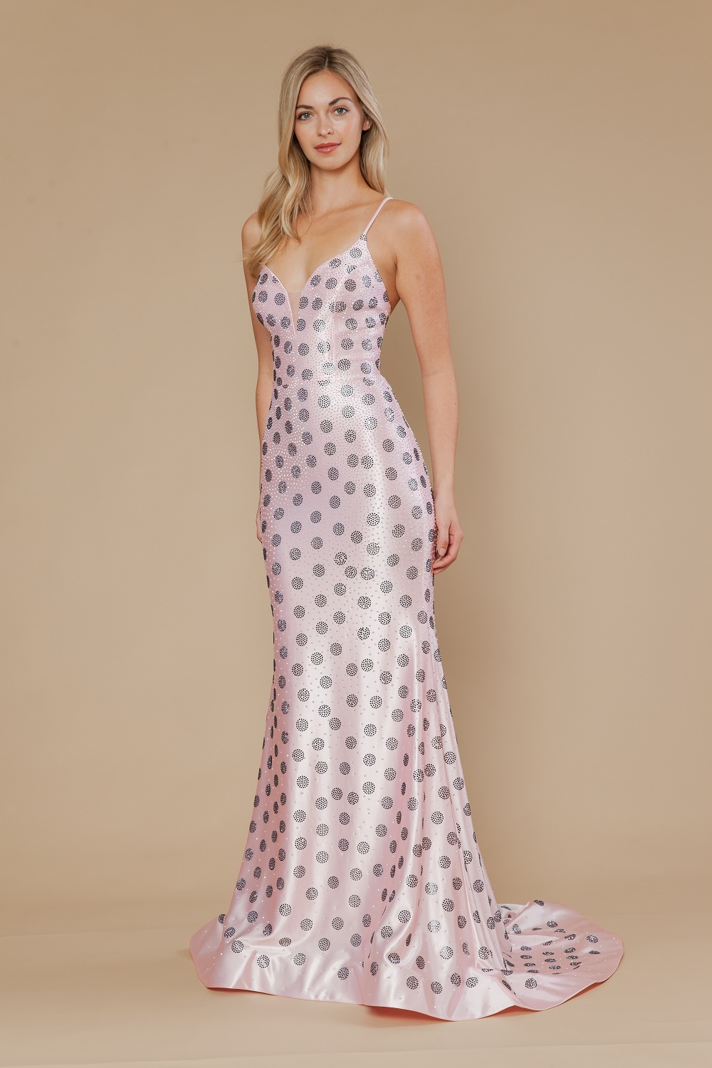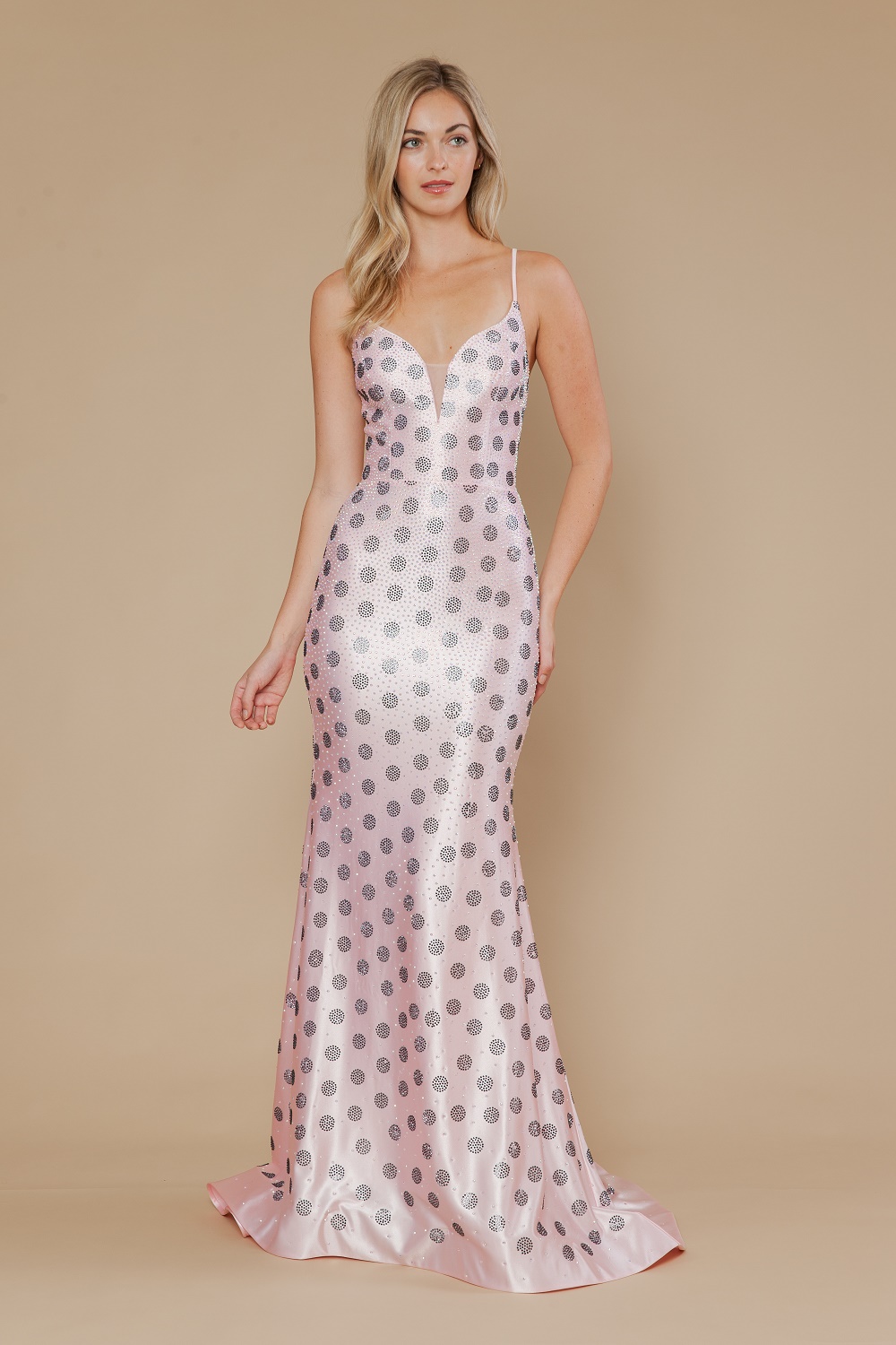 Delicate rhinestone detailing adds the perfect touch of sparkle, catching the light beautifully with every move. Ideal for prom night, this dress combines modern elegance with timeless glamour—perfect for anyone looking to stand out with confidence and style.